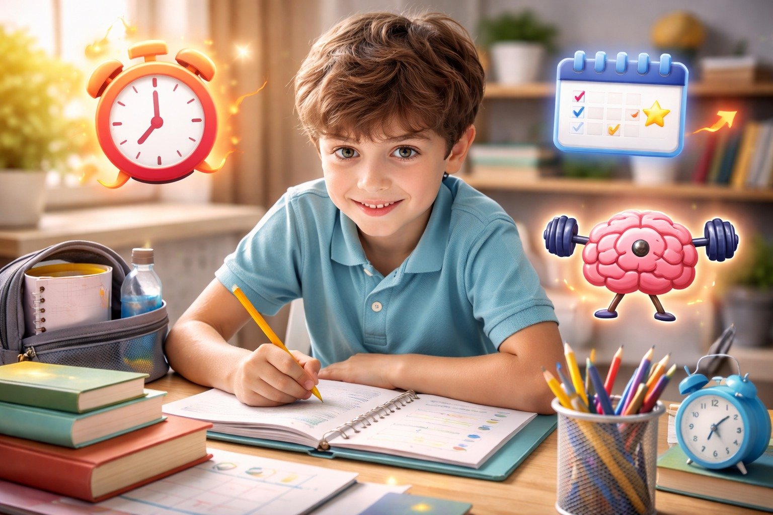 📚 ثانيًا: وقت الدراسة – كيف ترفع تركيز طفلك؟